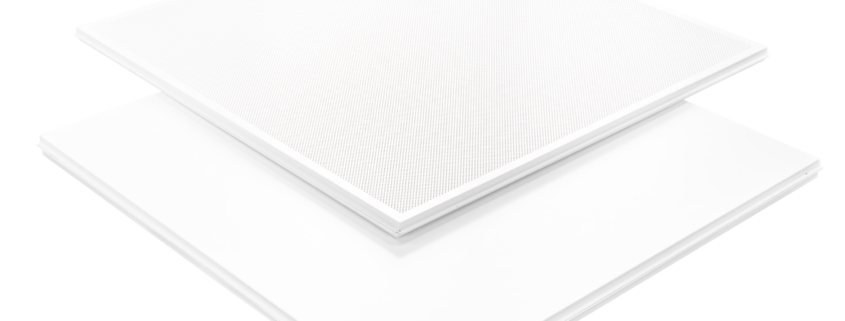 Metal ceiling tile plain or perforated ThermaCool® ceiling tiles are installed into a conventional suspended ceiling system like our ThermaCool® Clic In 24mm/15mm grid.